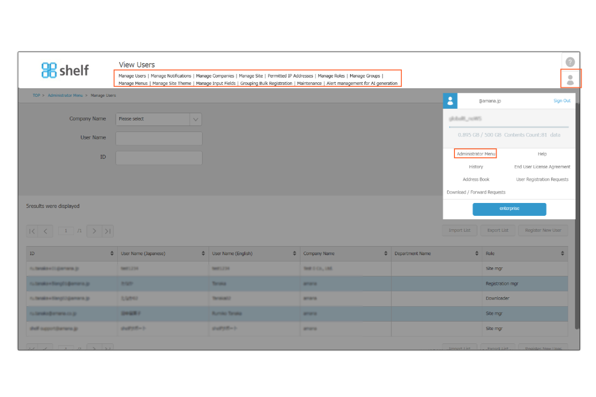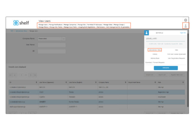 * Administrator menu is available in Japanese and English only. If you select another language site, please log in again to the Japanese or English site.