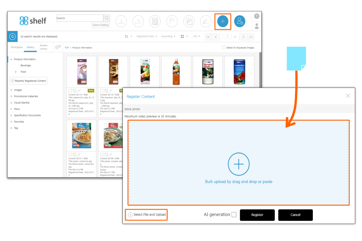 Alternatively, you can select the content by clicking [Select File and Upload] button at the bottom of the registration area.