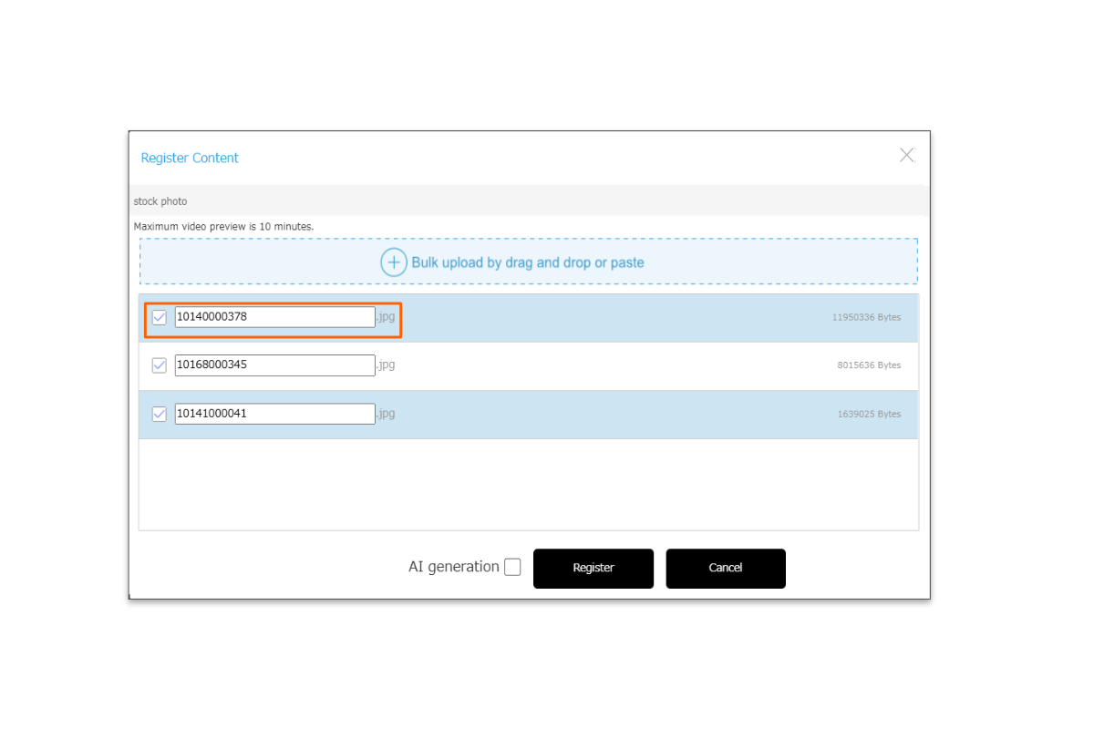 Allows you to sequentially edit the newly registered contents’ meta information. - Bulk Edit * For multiple item registration.