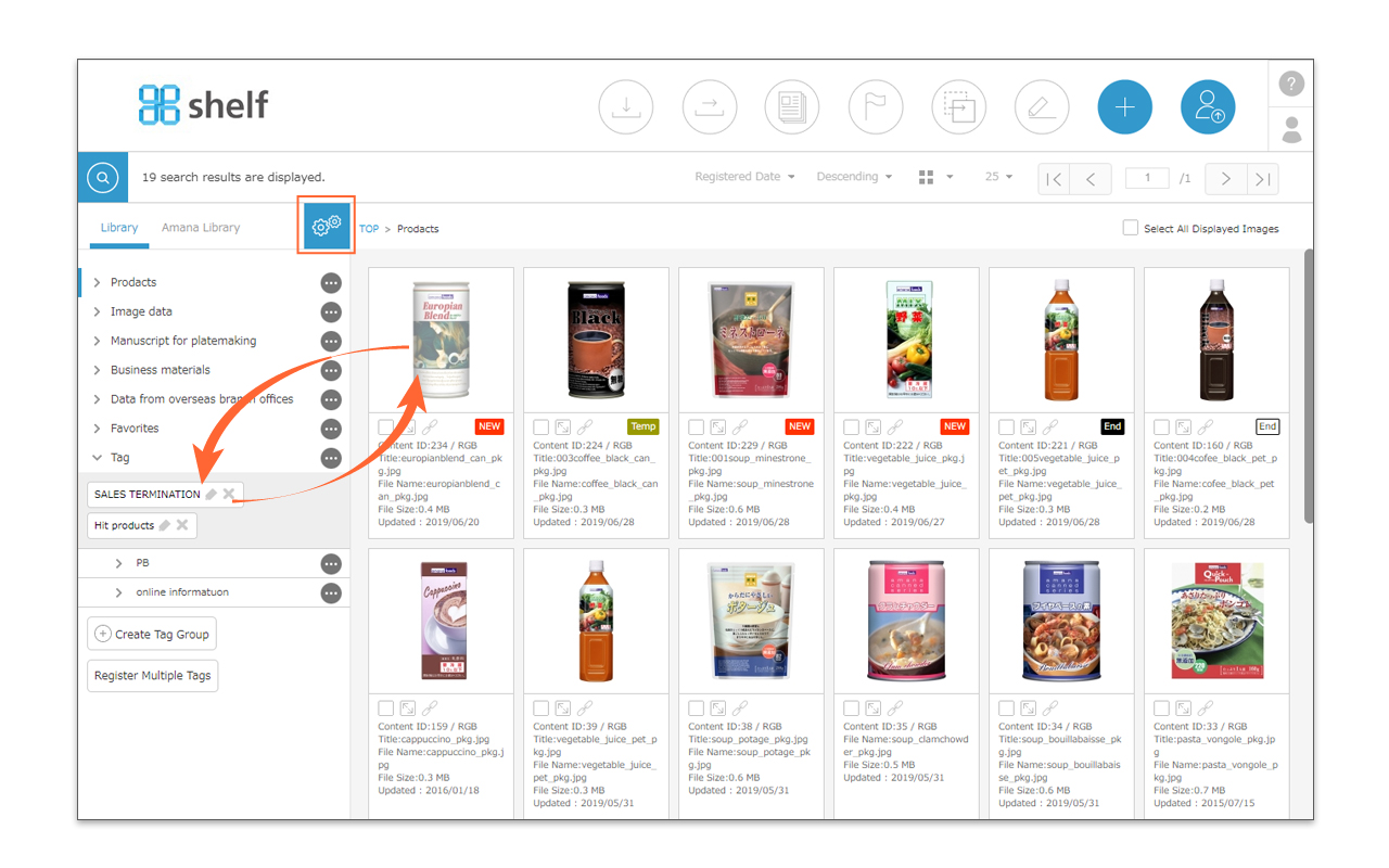 - With the tag menu expanded, click the options icon <gear icon