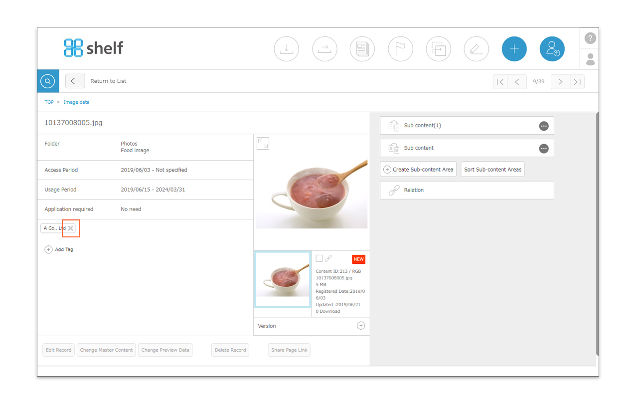 - Click the X icon to delete the tag.