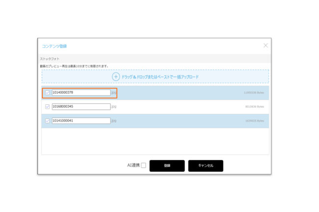 1. コンテンツ登録エリアにファイル名が表示されます。登録するデータのファイル名を変更したい場合は、ファイル名をクリックし書き換えてください。