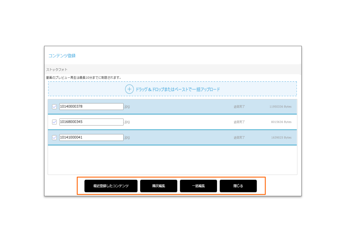 登録したコンテンツのメタ情報を一括編集します。 - 閉じる