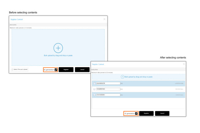 登録したコンテンツのメタ情報を編集画面で順次編集します。 - ≪一括編集≫ *複数登録した場合